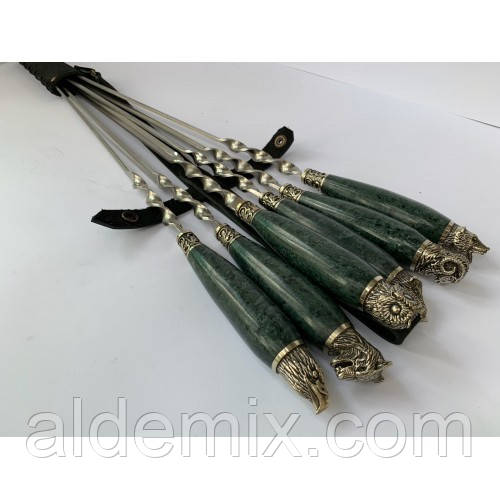 Шампура "Дикі звірі" з мармуровою ручкою в шкіряному сагайді