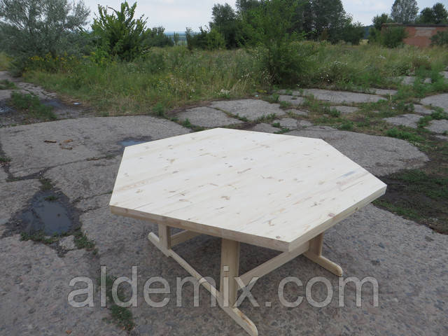 Шестигранний стіл виготовлений із масиву дерева (сосна).