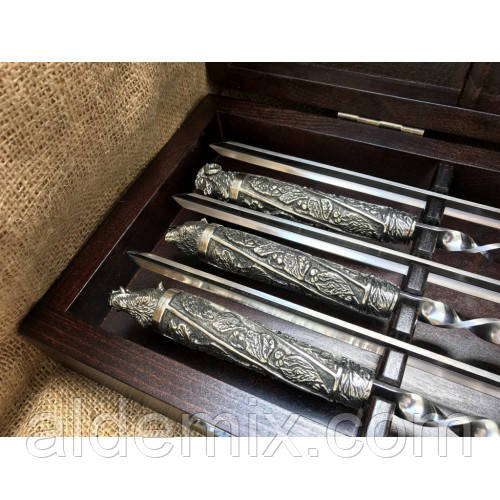 Шампура "Дикі звірі меляр" у кейсі з натурального дерева