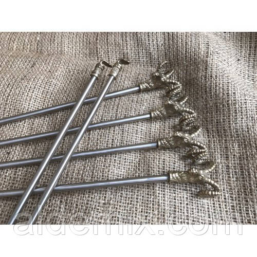 Мангал складається з чотирьох стоїків головами Барана з бронзи та дві перекладини з шишками з бронзи.